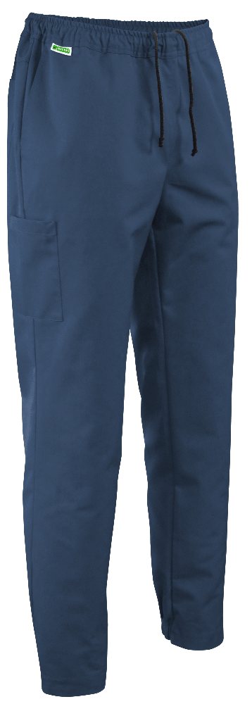 Tailleband met elastiek en koord (aan de binnenkant); 2 zijzakken; 2 achterzakken; 1 dijbeenzak rechts ophanglusjes binnenin; elastische pijpen aan de achterkant