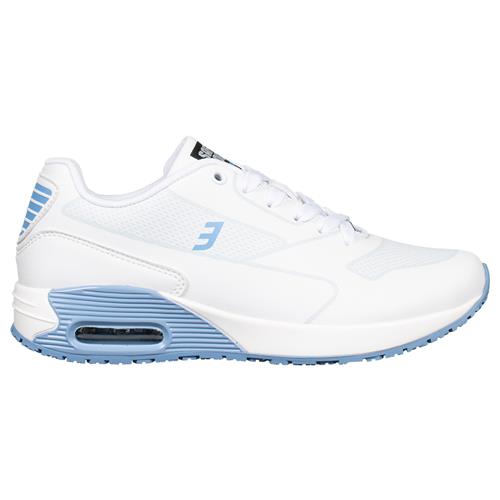 Het model ELA is een coole sneaker, volledig aangepast aan de noden van de zorgprofessionals. Deze gesloten schoen beschermt je voet maximaal en zit dankzij de veters extra stevig aan de voet. De Air-unit in de hiel zorgt voor een optimale schokdemping. De uitneembare binnenzool in memory foam zorgt voor heerlijk comfort. Het buitenmateriaal bestaat uit leder en kan eenvoudig met een vochtige doek gereinigd worden. De zool is anti-slip en heeft een antistatische plug.