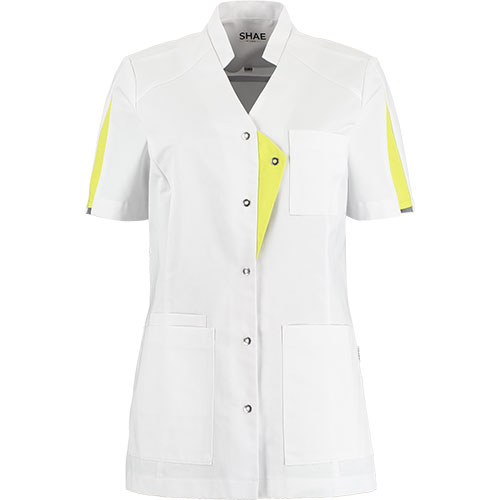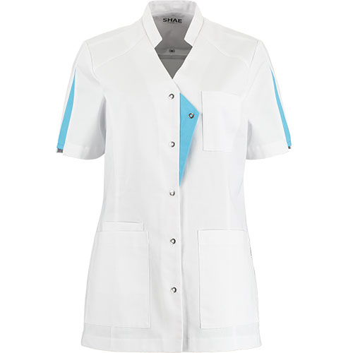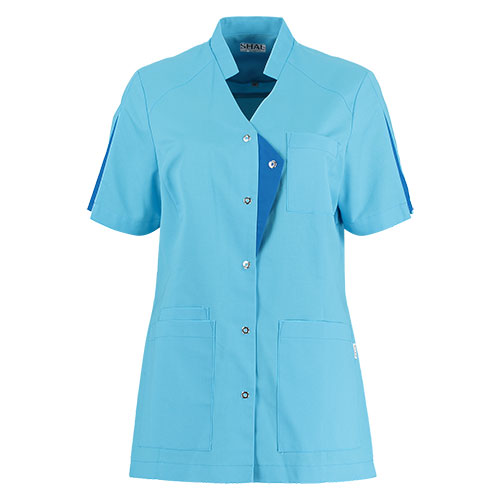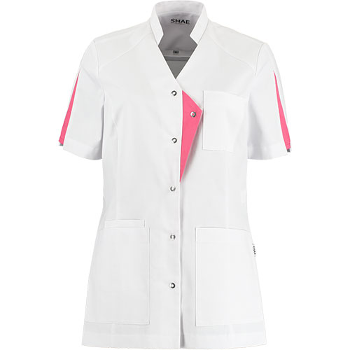 Comfort en elegantie in uw nieuwe favoriete tuniek. Dat is waar SHAE voor staat. Het dames tuniek Isla heeft een perfecte op het lichaam aansluitende pasvorm. Het tuniek is voorzien van 4 zakken waaronder een handige universele telefoonzak, twee zijsplitten, een V-hals met boord en trendy drukkers. Het tuniek is uitgevoerd in een speciaal geselecteerde gerecycled polyester met katoen. De mouwen zijn uitgevoerd met splitten voor extra bewegingsvrijheid. Het tuniek Isla is zowel thuis als industrieel te wassen.