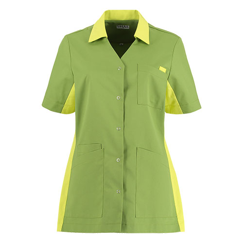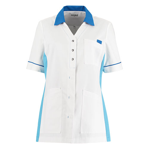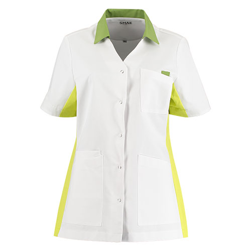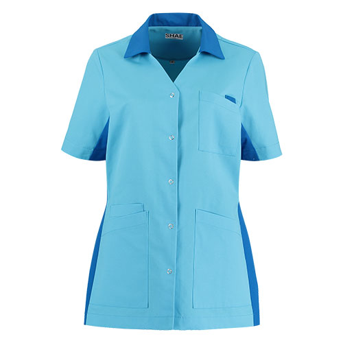 Comfort en elegantie gecombineerd in uw nieuwe favoriete tuniek! Dat is waar SHAE voor staat. Het basic model Luna heeft een perfecte op het lichaam aansluitende pasvorm. Het tuniek is voorzien van 4 zakken waaronder een handige universele telefoonzak, twee zijsplitten, een V-hals met een staande kraag en een praktische doorknoopsluiting. Het tuniek is uitgevoerd in een speciaal geselecteerde gerecycled polyester met katoen. De mouwen kunnen bij warmere temperaturen omgeslagen worden. Het tuniek Luna is zowel thuis als industrieel te wassen.
