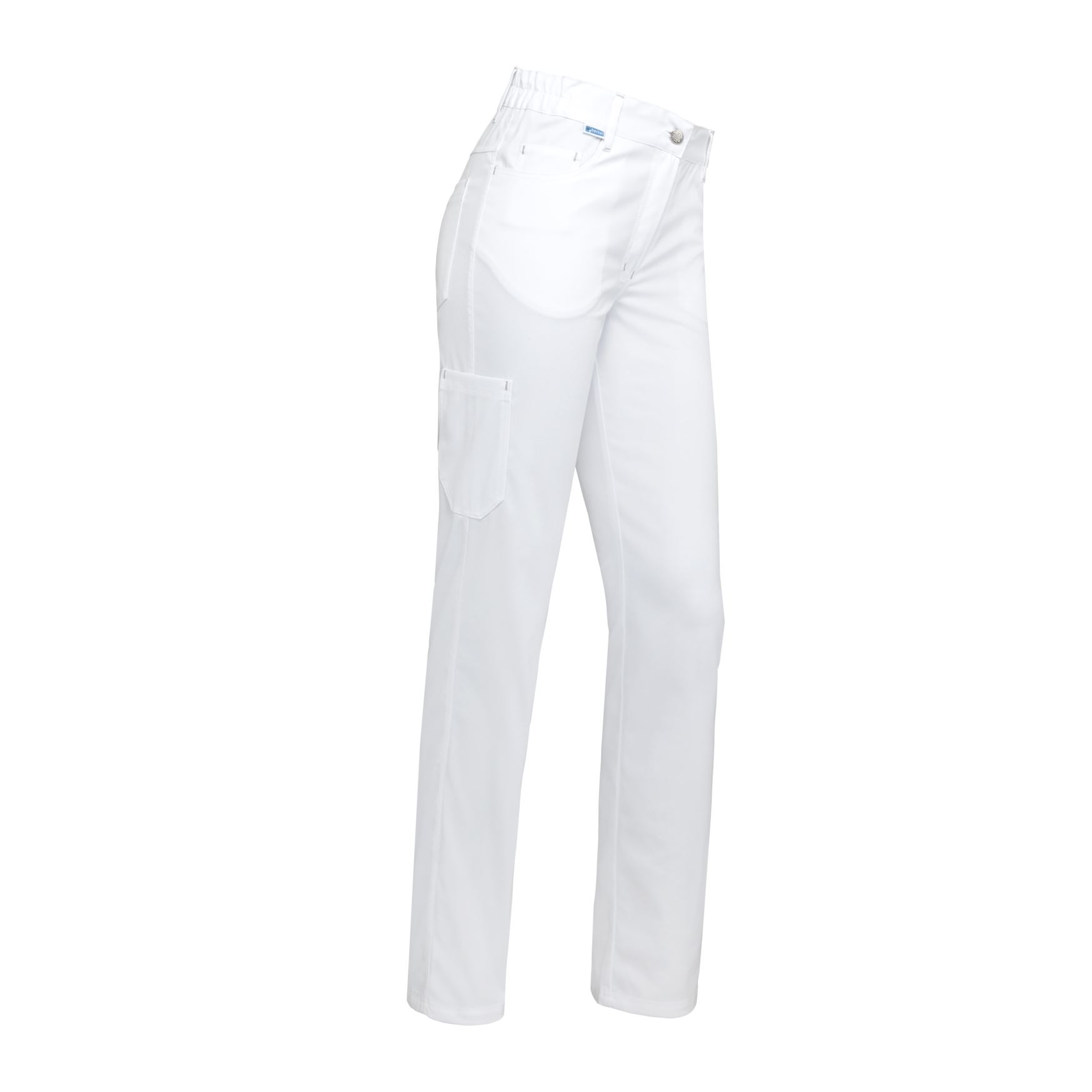 Sportieve slankere damespantalon met jeans-look, meerdere zakken, dijbeenzak, accenttrensjes in grijs, gedeeltelijk elastiek in tailleband en uitgevoerd in comfortabele stretch kwaliteit.